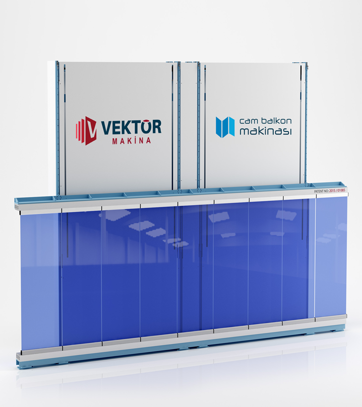 Katlanır Cam Balkon Kapatma sistemleri üretmek amacıyla kurulan Vektör Cam Balkon Arge ve inavasyon çalışmaları sonucu mevcut üretimdeki ve montajdaki eksiklikleri görüp imalat işçiliğini hızlandıracak yapılan ve yapılabilecek üretim hatalarını ve bunların yansıması olarak montajdaki aksaklıkları giderebilecek Cam Balkon Makinasını yapmakta